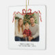 Ornamento De Cerâmica Red Bow Christmas Photo Square