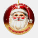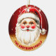 Celebrar a época festiva com nossa reluzente de ouro vermelha... Retro Papai Noel... ornamento cerâmico de Natal! Este adorável ornamento apresenta um nostálgico design de Papai Noel contra um fundo na moda de luz vermelha-vermelha, combinando charme de safra com talento moderno. Perfeito por adicionar um toque festivo à sua árvore de Natal. Personalize este design personalizado com o seu próprio nome de família.