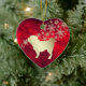 Este único ornamento de Feriado fará um maravilhoso presente de manutenção para qualquer um que ama um Pug! Apresenta uma silhueta dourada Imagem de cão Pug em frente a um spray de flocos de neve de ouro ornamentado. A imagem é colocada sobre um gradiente fundo vermelho de Natal profundo. A parte de trás do ornamento tem o mesmo fundo vermelho e flocos de neve dourados, e um campo de texto para você personalizar. Bonito!