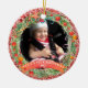 Rua Vermelha e Brilhante Primeiro Ornamento de Natal apresenta rosa dourado e design de coroa. Este ornamento cerâmico é personalizável para que você possa alterar o texto para adicionar seu próprio nome, data e detalhes, e alterar a imagem para adicionar sua própria foto de família. Você também pode personalizar isso ainda mais escolhendo de uma variedade de outras formas para se adequar ao seu gosto e decoração.