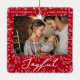 Ornamento De Cerâmica Red Mistletoe Doodles 2 Photos Joyful