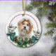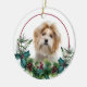 Ornamento De Cerâmica Red White Shih Tzu Dog Evergreen Wreath