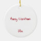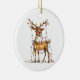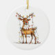 Ré-de-nariz-vermelho-capricho-quádruplo com luzes-de-árvore nas suas galhadas impressas num ornamento cerâmico comemorativo do Natal. O texto no verso pode ser alterado. Imagem assistida por IA adquirida com licença comercial. Trabalho de arte: PaintPixelCo