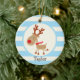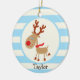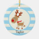 Ornamento De Cerâmica Reindeer Vermelho Nosed; Blue Stripes