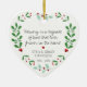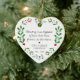 A true keepsake of someone who you miss terribly. Heart shape ornament with winter greenery framing a quote " "Memory is a keepsake of time that lives forever in the heart"