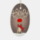 Decoração personalizável de rena alegre na neve profunda para ajudar a celebrar o Natal com um sorriso. O texto no verso pode ser personalizado com suas próprias palavras e nomes. Arte e design por Sarah Trett.