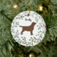 Adorno de Natal de Labrador Chocolate em um lindo desenho de grinalda. Personalize com nome e ano. DIREITOS AUTORAIS © 2020 Judy Burrows, Black Dog Art - Todos os Direitos Reservados