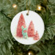 Um veado de aqua vintage fica na neve diante de uma garrafa rosa e abrupta pincelada árvores de Natal.