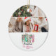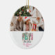 Celebrate the season with bold sparkle and retro flair. This festive ornament combines glittery "Ho Ho Ho" lettering with space for your favorite holiday photo, creating a cheerful keepsake that captures the magic of the moment. With its playful tree-patterned typography, pastel tones, and vintage-inspired charm, it’s the perfect addition to your Christmas tree—or a thoughtful gift with personality.