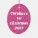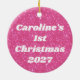 Celebre o primeiro Natal do seu bebê em estilo com este adorno divertido e vibrante que é tão único como o seu pequeno. O design de brilho cor-de-rosa-quente retrógrado adiciona um pop de cor divertida à sua árvore de férias, e é personalizado com o nome do seu bebê e o ano, fazer-o como um guardião especial que você vai tesourar para sempre. Este ornamento é a forma perfeita de marcar este marco alegre e de adicionar um toque de brilho às comemorações de férias da sua família.