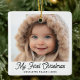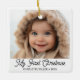 Ornamento Cerâmico Foto de Natal do Bebê Retro Script