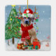 Ornamento De Cerâmica Ridgeback Dog em Presente de Natal na Neve