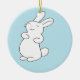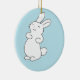 Ornamento De Cerâmica Rindo de coelho branco em azul