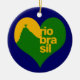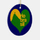 Um coração de cor verde e amarelo, com a montanha de Corcovado e o texto Rio-Brasil