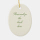 A parte dianteira deste ornamento oval da lembrança tem um arbusto de rosas amarelos com folhas e ramos verdes. A imagem original era um a lápis desenho do vintage. Eu adicionei a protecção amarela aos rosas e ao verde à folha e aos ramos. Você pode editar o texto do exemplo na parte traseira para fazer este ornamento adaptável a toda a ocasião gifting. Também disponível com os rosas cor-de-rosa ou alaranjados na seção dos "designs florais" de minha loja.