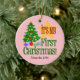 Ornamento De Cerâmica Rosas claro com o primeiro pedido de Natal do bebê
