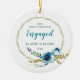 Primeiro Natal Envolvido Rosas Russos Personalizados Ornamento Cerâmico. Personalize com suas informações personalizadas tanto na frente quanto na parte traseira.