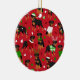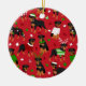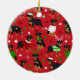 Cães girinos de Natal bonitos em roupas festivas de férias. Os rottweilers com casacos pretas e bronzeadas seguram canas doces, vestem chapéus de Papai Noel, chifres, suéteres com ornamentos espalhados.