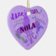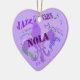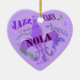 O jazz acima de sua árvore de Natal com este coração deu forma ao ornamento que caracteriza um símbolo roxo da flor de lis com as letras NOLA (Nova Orleães, La.) através do centro em um design optimista que caracteriza os nomes de gênero da música de Nova Orleães tais como o jazz, os azuis, o ragtime, o zydeco e o Cajun. Personalize a parte traseira com sua própria mensagem ou suprima do texto para uma parte traseira vazia do roxo.