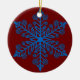 Perfect for holiday decorating, gifting, or adding a modern twist to classic winter themes, this ornament blends simplicity with sophistication. The deep red backdrop brings warmth and richness, while the blue snowflake adds cool, crisp detail. Whether you love traditional holiday colors or unique, eye-catching designs, this ornament brings a festive and stylish touch to the season.