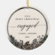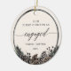 Celebre seu primeiro Natal engajado com este ornamento projetado com um fio preto decorado com pinus e pinecones. Adicione seus nomes e ano de noivado. O dorso é desenhado com uma madeira escura e preta para um olhar rústico.