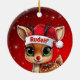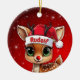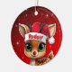 Rudolf! Celebrate the holiday season with this festive round ceramic red ornament featuring an endearing woodland forest animal cartoon graphic of a cute baby reindeer wearing a Santa hat. Perfect deer with antlers for decorating your tree or as a thoughtful gift, this whimsical doe decor makes a cherished keepsake for years to come. Customize by changing the text, the font, the font color, or remove the text. You can even transfer this design onto other products. Enjoy this design your way! Check out ForestBabies Xmas Deer Collection for matching decorations. 🎄🦌