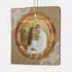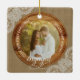 Ornamento De Cerâmica Rustic Burlap and Lace First Christmas engaged