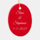 Comemore seu primeiro Natal junto com este lindo ornamento! A frente apresenta uma fotografia de um coração candi com o texto Amor. O fundo tem um fundo vermelho e pode ser personalizado com nomes de casal e data. Isso seria um presente excelente para recém-casados. Ou até um favor casamento no inverno.