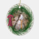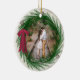 Rustic First Christmas Engaged Two Photo Christmas Cerâmica Ornament - Que maravilhoso recordação de seu primeiro Natal Engajado. Você se lembrará desta maravilhosa época todo ano quando decorar sua árvore de Natal juntos. O ornamento faria um belo presente para ser precioso durante anos. O ornamento russo mostra duas de suas fotos especiais, na frente, sua foto está cercada por uma coroa rústica e as costas com seus nomes, ano e tipografia bonito. Nosso modelo de alta qualidade facilita a personalização do seu ornamento especial. O ornamento faz parte de uma coleção. Projetado por Homespun Cottage Designs E: homespuncottagedesigns@gmail.com