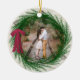 Ornamento De Cerâmica Rustic First Christmas Engajou Duas Fotografias no