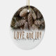 Ornamento De Cerâmica Rustic Holiday Love and Joy Pine Cone