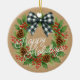 Ornamento De Cerâmica Rustic Holly Wreath White Black Checking Arco