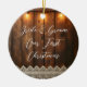 Rustic Wood and Lace Wedding First Christmas Ceramic Ornament