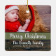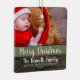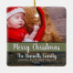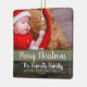 Rustic Wood Script Feliz Natal Feriado Cerâmica Ornament. Ornamento de fotos de Natal russo e moderno com uma foto da família - insira sua foto favorita na modelo. O fundo é madeira rústica escura com neve. Personalize o script branco da tendência com seu texto. Celebre o feriado com este ornamento de fotos da família rustica.