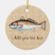 Este ornamento é certo satisfazer o amor da natureza. As características do ornamento e os salmonetess artísticos criaram à mão no computador em um fundo natural do weave do falso. Personalize ambos os lados com sua própria mensagem.