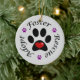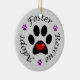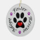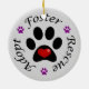 Estes enfeites de natal caracterizam um impressão da pata com um coração vermelho para dentro. Promove o salvamento animal com as palavras adotam, promovem e salvam separado com impressões roxos da pata. Presente perfeito para o senhor mesmo ou algum amante dos animais. Os abrigos animais podiam usar este artigo em um leilão silencioso ou raffle como um fundo - raiser.