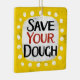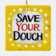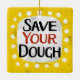 "Save Your Dough" é um design de texto divertido com uma forma de sotaque branca rodeada por pontos brancos texturizados.