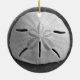 Uma concha de areia dólar repousa na costa da praia de areia com luz lateral suave do pôr do sol. Imagem é uma foto em preto e branco tirada em Playa Grande, Costa Rica na Costa do Pacífico. Personalize este pendente de ornamento da concha marítima com seu próprio texto ou imagens usando a opção personalizar para fazer um presente especial da concha de foca!