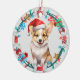 Ornamento De Cerâmica Santa Hat Corgi Puppy Bone Wreath