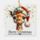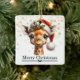 Ornamento De Cerâmica Santa Hat Funny Giraffe Merry Christmas
