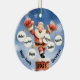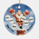 Celebrate the joy of togetherness with this whimsical 6 Names Christmas ornament featuring Santa atop a snowy chimney, holding customizable name baubles. A heartwarming winter scene with falling snowflakes and cheerful charm, perfect for honoring loved ones during the holiday season.