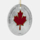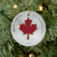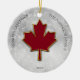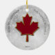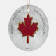 Folha de maple em vermelho profundo. Estilizado com uma falsa borda metálica dourada ao redor das bordas. Coloque uma neve de boque como fundo. Personalize com suas saudações, nome e ano em letras maiúsculas pretas. Imagem e texto definidos em ambos os lados do ornamento.