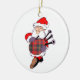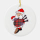Uma imagem colorida de Papai Noel que joga as tubulações do saco é caracterizada aqui. No reverso é a inscrição "Nollaig Chridheil" no gaélico escocês que traduz como o "Feliz Natal".