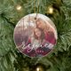 O ornamento de feriado simples e elegante apresenta uma foto em cada lado com "regozijo", sobreposto em caracteres brancos. Personalizado com o ano abaixo.
