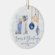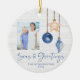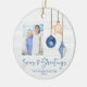 Seas e Saudações Ornament de Seashell sobre Feriados Costeiros Feriados de Natal Ornamentos de Foto com marinho azul-oceano e arenoso que margeis pendurados na corda de juta na madeira de shiplap costeira com tipografia elegante. Adicione duas das suas fotos e uma mensagem pessoal para um ornamento ou presente náutico divertido. Entre em contato conosco em cedarandstring@gmail.com se precisar de assistência com o design ou produtos correspondentes.