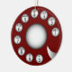 Parte traseira da etapa a tempo, um bocado, com estes enfeites de natal redondos do seletor giratório nostálgico vermelho do telefone.