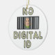 Nenhum ID digital é um design de identificação anti-obrigatório. Mostra as palavras e uma prisão de código de barras com uma dentro de cara de pau tentando sair. Uma declaração de protesto contra a vigilância e a favor da privacidade e da liberdade civil.