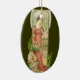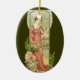 Linda mulher Art Nouveau, vestindo um vestido vermelho numa estufa de orquídea