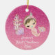 Ornamento De Cerâmica Sereia bebé primeiro Natal brilho rosa