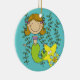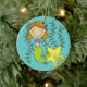 Uma sereia sorridente e uma natação amarela de estrelas-do-mar entre as algas, uma design que é fofa e colorida para meninas que amam o oceano e as sereias! T-shirts de sereia, fatos-chave, bíblias, cobertores, panos de arroto, cartões, autocolantes, bolsas, canecas, correntes-chave, travesseiros, relógios de parede e muitas outras artes de sereia!